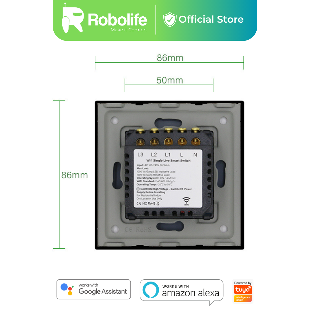 Robolife Smart Switch adalah saklar pintar, dimana aliran listrik dapat dikendalikan secara jarak jauh melalui aplikasi di smartphone aja. Produk ini tidak memerlukan neutral line sehingga cocok untuk pengguna yang memprioritaskan kepraktisan dalam pemasangan saklar pintar di rumah yang sudah dibangun.